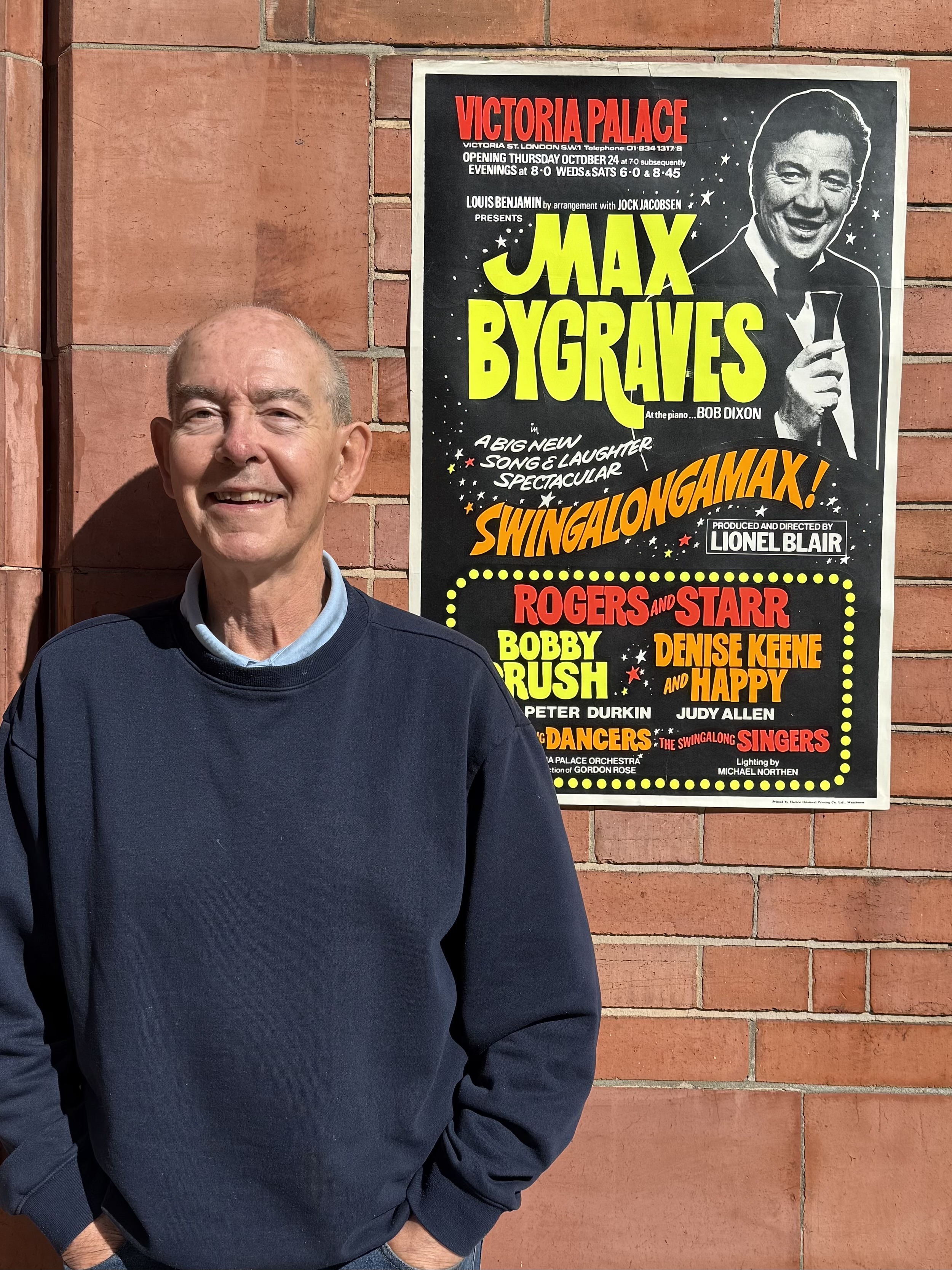 Reunited at last with the Swingalongamax poster that disappeared mysteriously from the lobby of the Victoria Palace, as described in my forthcoming memoir Backstage Confidential. When I worked on the show during the early 1970s Mr Bygraves was an imposing presence, but I didn’t know he had mystical powers until revisiting the theatre years later. Harry Dunbar, who was doing a similar job to the one I did half a century earlier, assured me the poster was on display, but after searching the theatre from top to bottom we concluded that the spirit of Max had conjured it away. (For the avoidance of doubt, as the lawyers say, this is not the actual vanished poster, but a recently acquired copy from the original print run.)